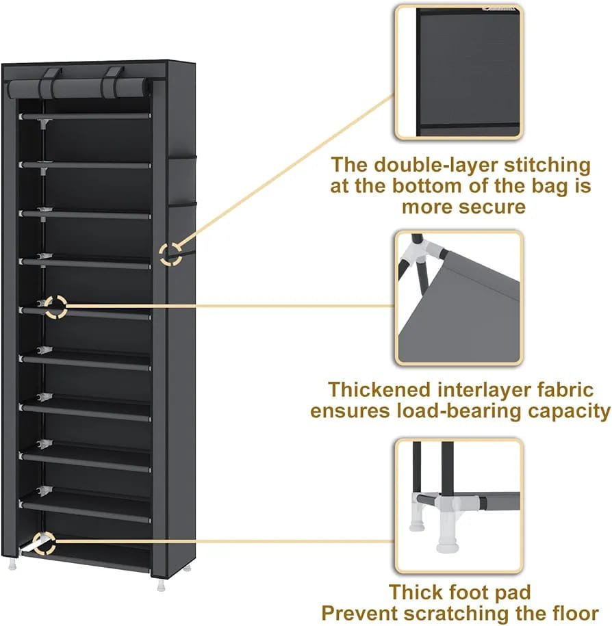 - 10 طبقات لتخزين عدد كبير من الأحذية